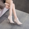 诺琎潮牌马丁靴女2020年新款韩版百搭细跟职业高跟鞋秋冬季百搭尖头短靴 米色 36