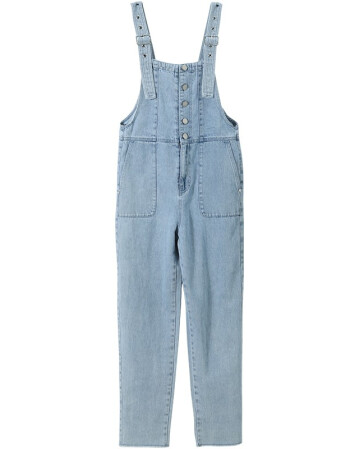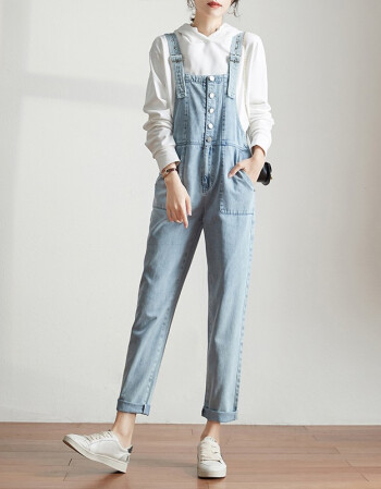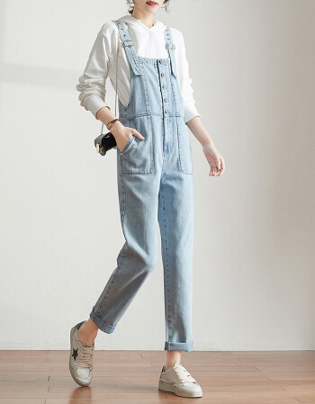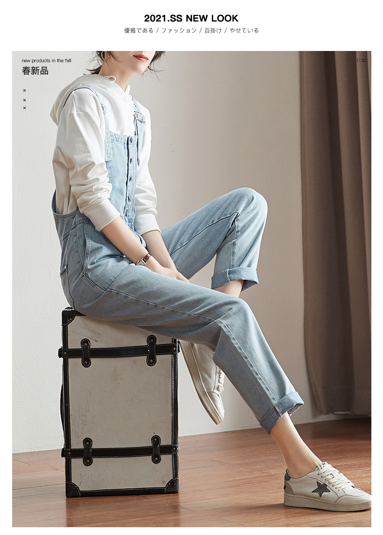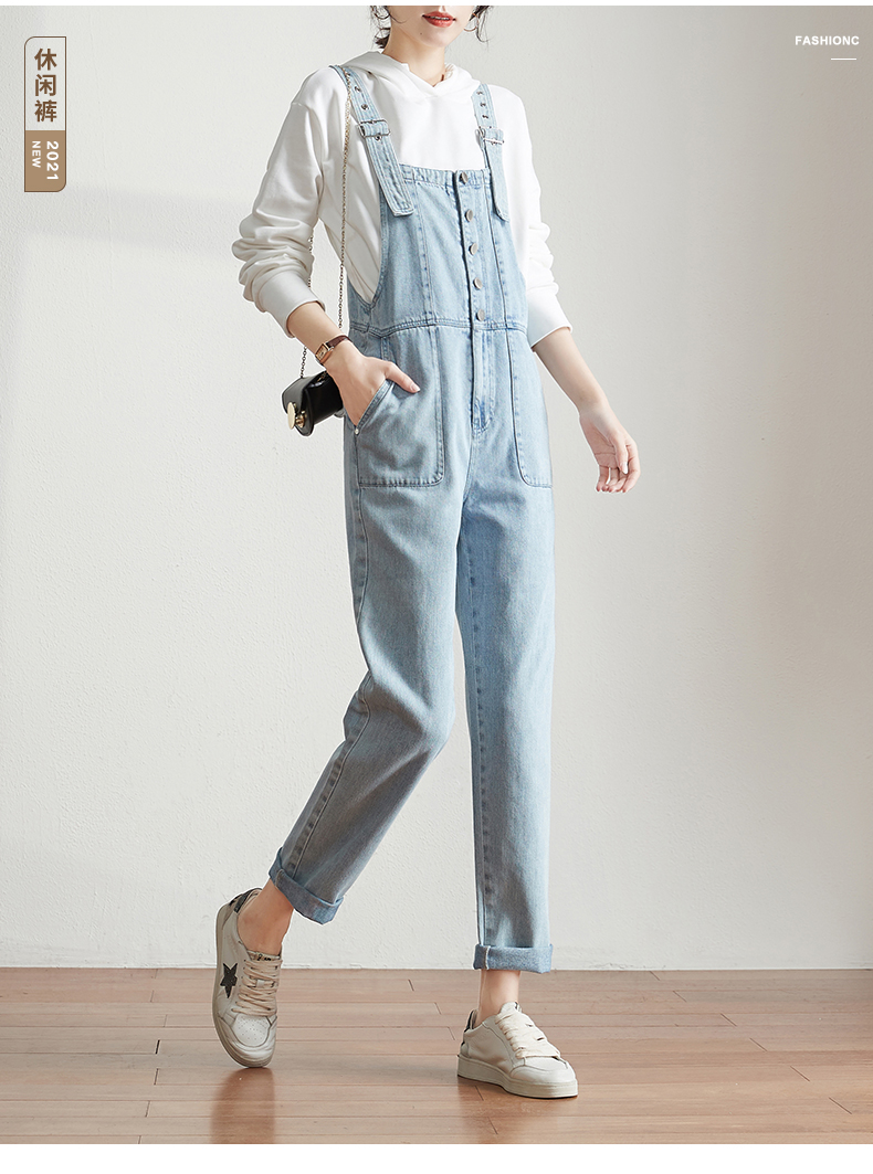 索菲丝尔背带裤女韩版宽松2021春新款女士牛仔裤女直筒显瘦裤子女 浅蓝 S/26