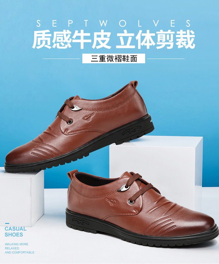 七匹狼(SEPTWOLVES)商务休闲鞋男士皮鞋英伦时尚系带休闲皮鞋男鞋子8373335106土黄色40