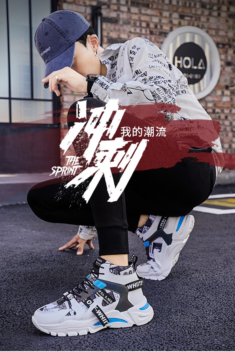 飞潮男鞋高帮鞋子男韩版潮流运动休闲鞋百搭板鞋学生增高跑步篮球鞋青少年情侣反光时尚潮鞋