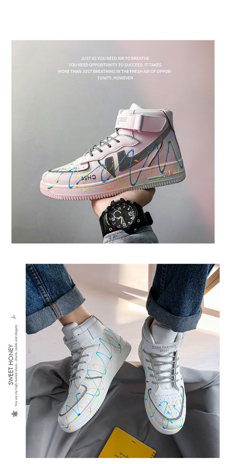 飞潮男鞋高帮鞋子男韩版潮流运动休闲鞋百搭板鞋学生增高跑步篮球鞋青少年情侣反光时尚潮鞋