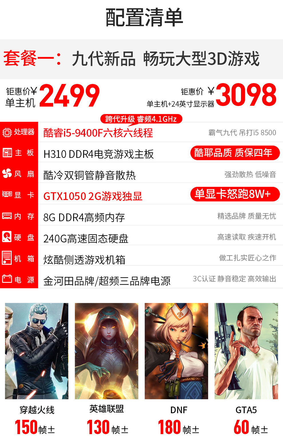 战神盟主 酷睿i5 9400F/GTX1060独显 吃鸡游戏台式机电脑主机组装整机 电脑主机
